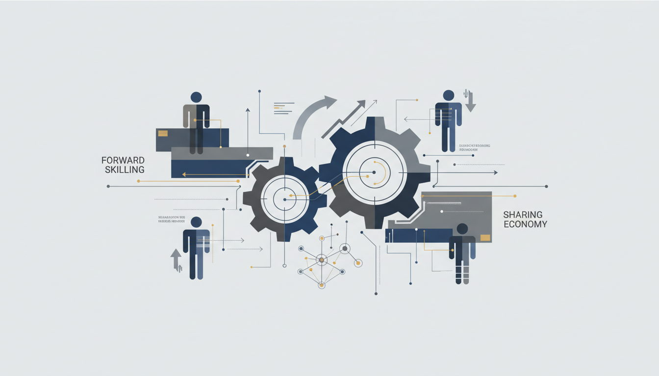 このフォワードスキリングを推進する上で特徴的なのが、「シェアリングエコノミー」のアプローチを取り入れている点です。これは、一社が研修設備や専門講師、トレーニングプログラムといった人材育成リソースを全て抱え込むのではなく、複数の企業が共同で保有・利用し、コストとノウハウを共有するという考え方です。例えば、地域の企業連合が共同で高度な工作機械や測定器を備えたトレーニングセンターを設立したり、特定のデジタル技術に精通した技術者を企業間で一時的に派遣し合ったり、といった形態が考えられます。