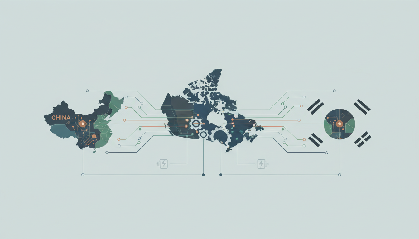 こうした状況を打開する好機としてカナダが着目したのが、世界的な電気自動車(EV)へのシフトです。内燃機関(ICE)からEVへの移行は、既存のサプライチェーンや技術的な優位性を大きく揺るがす地殻変動であり、新規参入や勢力図の塗り替えが起こりやすい領域です。カナダ政府は、この変化を捉え、自国を北米におけるEVおよびバッテリー生産のハブとすべく、積極的な企業誘致に乗り出しています。その戦略上、重要なパートナーとして白羽の矢が立ったのが、EVとバッテリー技術で世界をリードする中国や韓国の企業です。彼らの持つ先進技術、生産ノウハウ、そして巨大な資本を呼び込むことで、国内に新たな産業クラスターを形成しようという狙いが見て取れます。